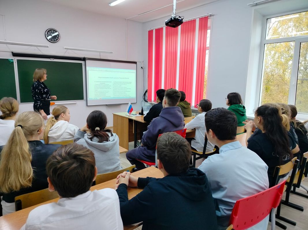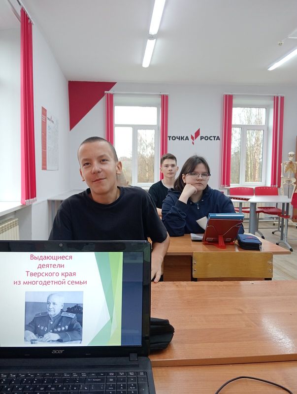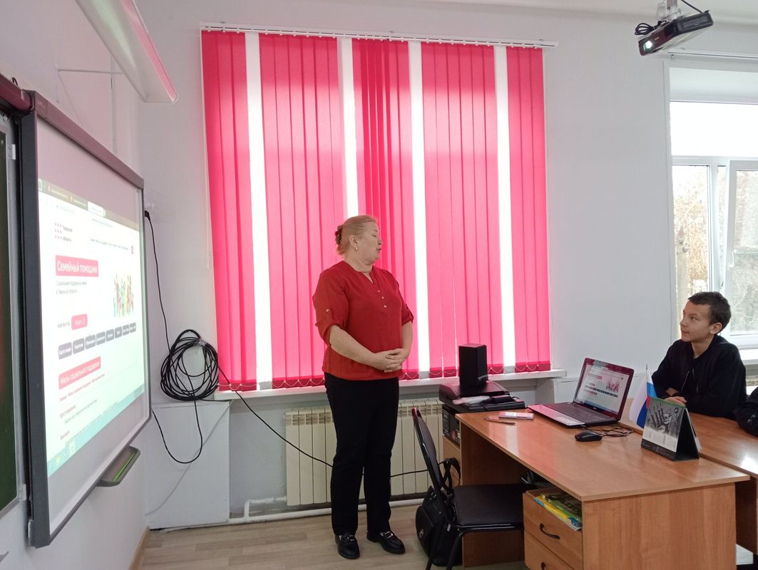 В рамках мероприятий по теме "Большая семья- тверская традиция" с обучающимися 7-9 классов проведена тематическая беседа "Меры поддержки семей в Тверской области". Всемерная поддержка семьи и укрепление семейных ценностей определены Президентом Российской Федерации Владимиром Путиным ключевой задачей для органов государственной власти. «В последние годы на федеральном и региональном уровне введён целый ряд новых мер социальной поддержки семей. Мы видим, что они достаточно эффективны. С 2015 года в Тверской области количество многодетных семей увеличилось более чем на 40% — до 11705. Новые инициативы, в первую очередь, направлены на молодые и многодетные семьи, решение жилищного вопроса, создание условий для роста доходов семей, включая трудоустройство, воспитание и образование детей, а также пропаганду семейных ценностей». Игорь Руденя. #Мерыподдержкисемей_тверскаяобласть